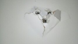 Ich los, erklärt und Einer hat mich begleitet mit Zange und Kreuzschlitzschraubendreher zum Tatort. Angeschaut. An die Wand geklopft. Hohl, Rigipskonstruktion. Fernseher angehoben so das es die untere Schraube aus der Wand gezogen hat. Natürlich gleich mit Dübel und dann nach unten. Plop war er draußen. Ich hab geschaut. Konnte nicht "äh!" sagen.