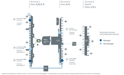 Wer normal laufen kann, für den sind es 10-15 Minuten bis zum Terminal 2 (ca. 750 Meter vom Gate D11 bis Eingang Terminal 2).