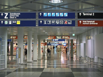 Ungefähr 400m bis zum Zentralbereich, 200m durch den Zentralbereich und dann nochmal 150m Ausgang Terminal 1 bis Eingang Terminal 2.