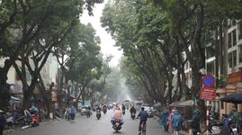 Um 12 Uhr Abfahrt, trocken, aber Sichtweite keine 2 km. Die Fahrt durchs Gewusel von Hanoi einfacher, als gedacht - nehme allerdings eine der